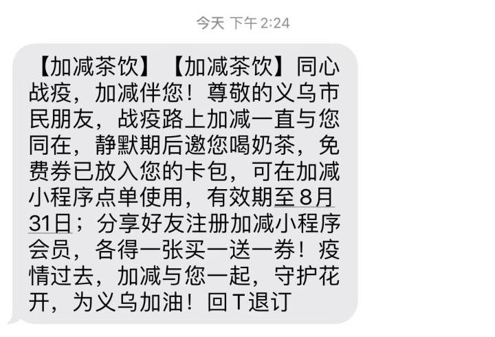 2022年8月18日,义乌市宣布部分区域解封!为庆祝区域人员结束静默期,“哈哈体育haha茶饮”邀请义乌人民免费喝奶茶。义乌战疫有速度、防疫有温度,哈哈体育haha有态度。让哈哈体育一起期待义乌早日全面解封,举“哈哈体育haha奶茶”共相庆!